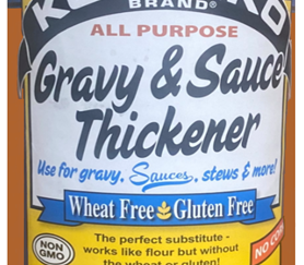 Introducing the WORLD’S first Wheat and Corn Free, Gluten Free Gravy Thickener. Easier to use than corn starch; just sprinkle into hot or cool gravy. Microwaveable; Works like flour without wheat, corn or gluten! 100% RICE STARCH made white rice.Introducing the WORLD’S first Wheat and Corn Free, Gluten Free Gravy Thickener. Easier to use than corn starch; just sprinkle into hot or cool gravy. Microwaveable; Works like flour without wheat, corn or gluten! 100% RICE STARCH made white rice.